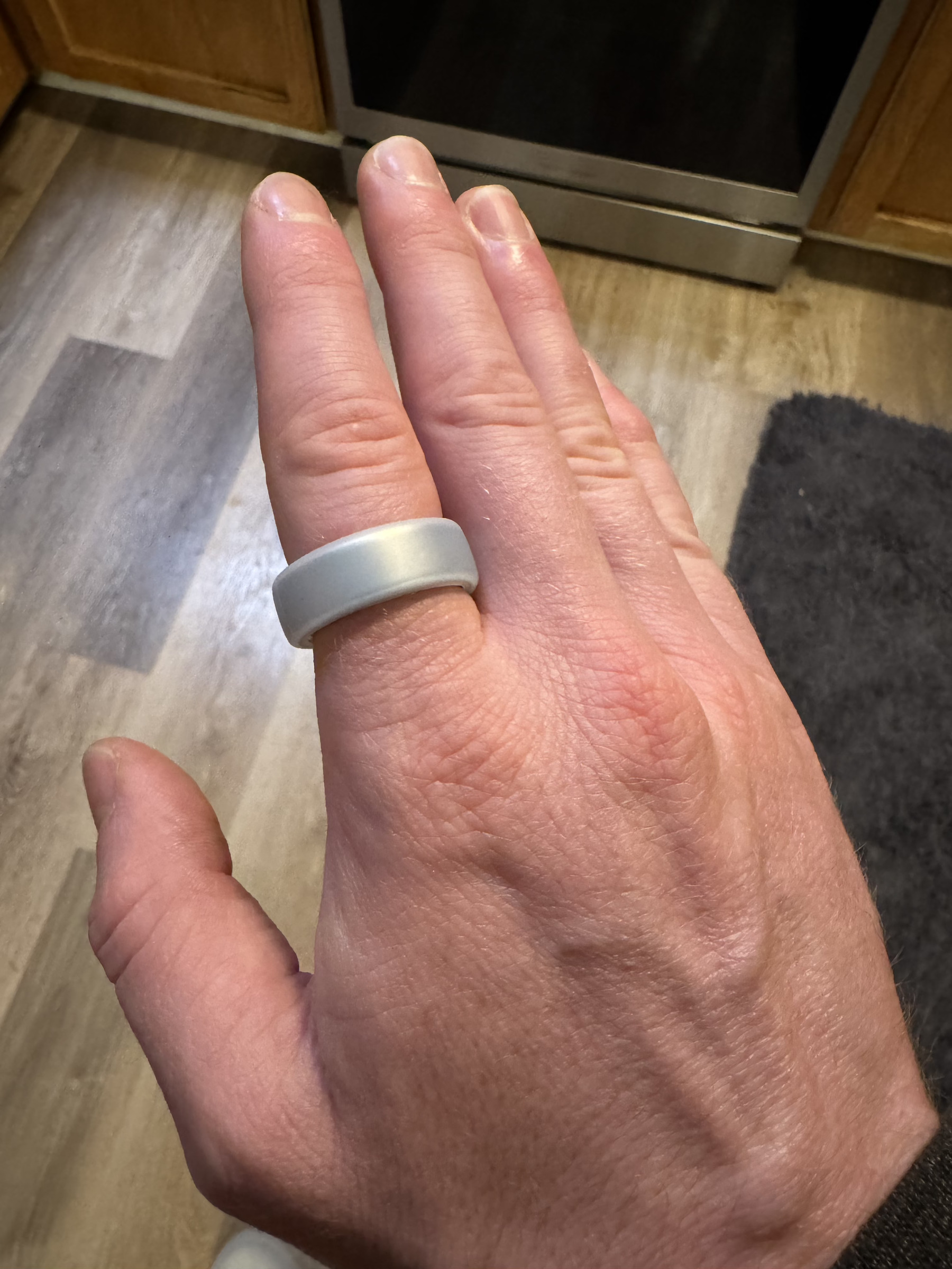 At first it was a bit of a hassle being between sizes. The sizing kit is misleading as the plastic sizers stay on your fingers better than a metal ring. I was between size 10 and 11, and initially bought 11, and after some hassle, got size 10 instead. I learned it’s better to erring on the smaller size based on your index finger, even if your fingers are more swollen in the morning, and your knuckles aren’t super knobby. I also got a basic inexpensive silicone ring protector too.