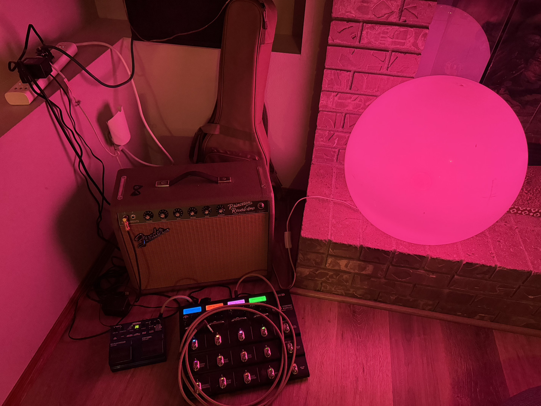 Check out below the photo of my guitar setup. The M13 has pretty cool, color coded lights, which adds to the ambiance.