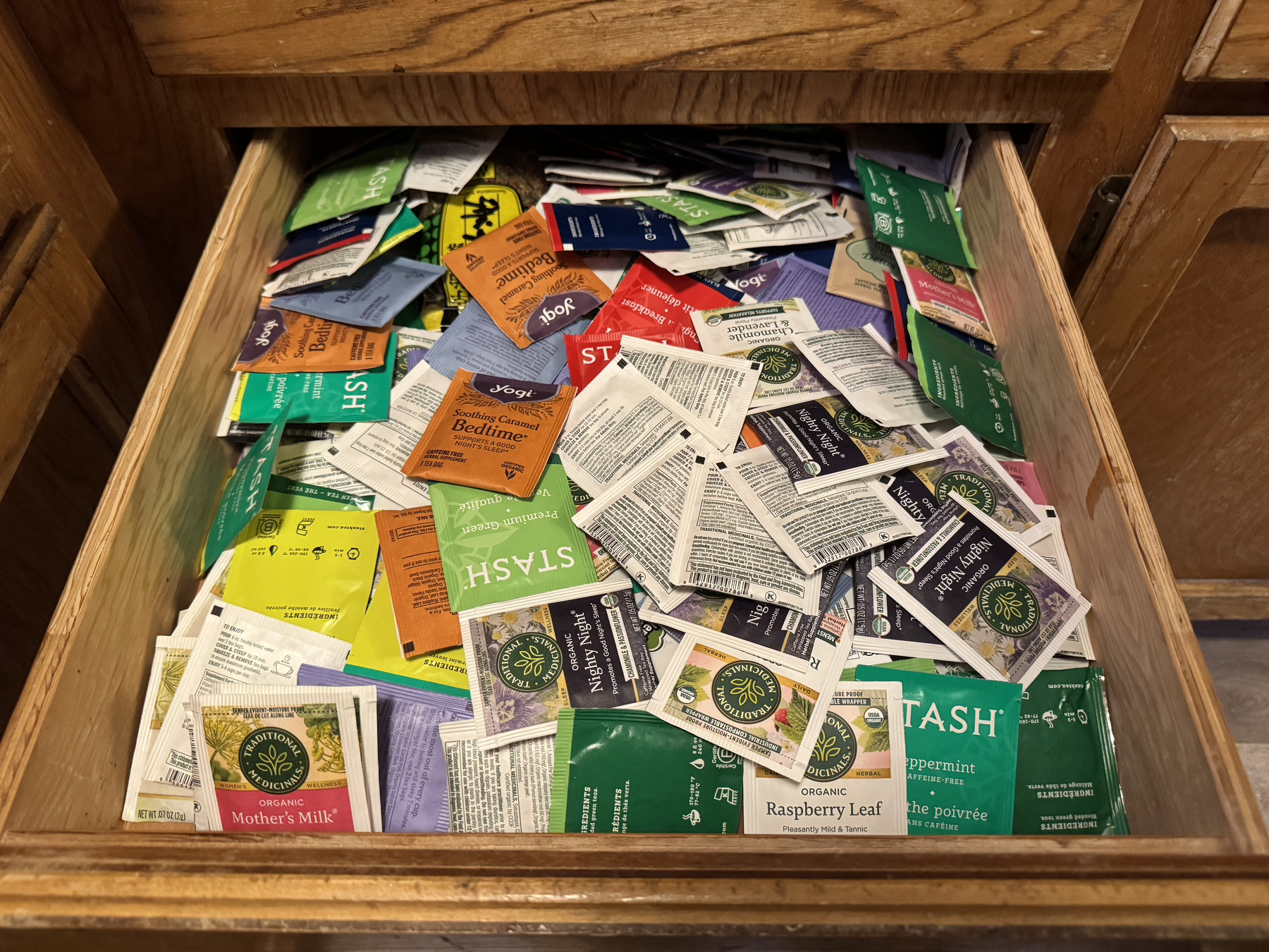 However, a couple years ago, our family friend who married my wife and I, had an electric tea kettle with temperature control, when he lived with us. Once he moved out, we decided to buy one, and it was a game changer for no longer boiling tea kettle water and burning my tongue regularly out of impatience. Plus, even the most expensive organic, top-tier, free-range, cage-free, fair-trade-certified tea bags bought at Whole Paycheck weren’t going to break the bank, let alone perfectly good mainstream varieties bought at WinCo. Now, we have a whole kitchen drawer filled with teas, ranging from sleep, immunity, stomach, green, earl grey, loose leaf yerba mate, black, ginger, fennel… you name it! Now, I feel like I can wind down early with sleep teas, and put CBD oil or kava in it and sleep great.